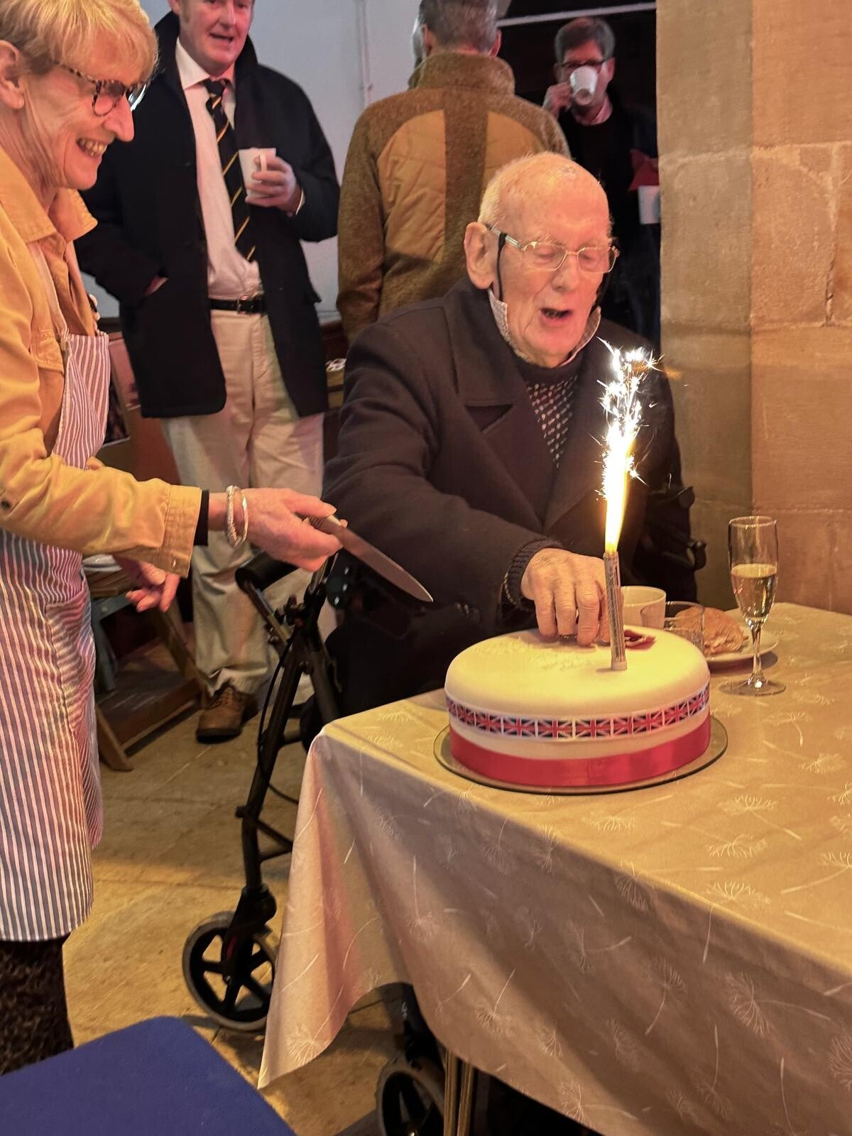 We all shared another celebration of achievement. Remember I said imagine getting a letter from the King? Well, Denis Kenyon did receive a letter from the King, appointing him as a Member of the Order of the British Empire (MBE). As Bryan Hollier explained, it was awarded for over 40 years of faithful service to the community in Hallaton, its history, village life, its church and the memory of fallen servicemen and women.