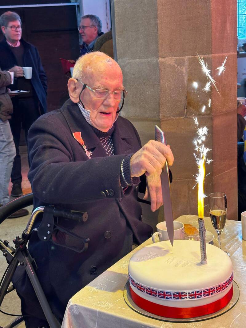 On Monday, on behalf of our Zoom congregation, Hilary, Madeleine, Mary and Linda visited him. They took afternoon tea, presents and this wonderful cake baked by Madeleine. They had had a lovely birthday party with him.