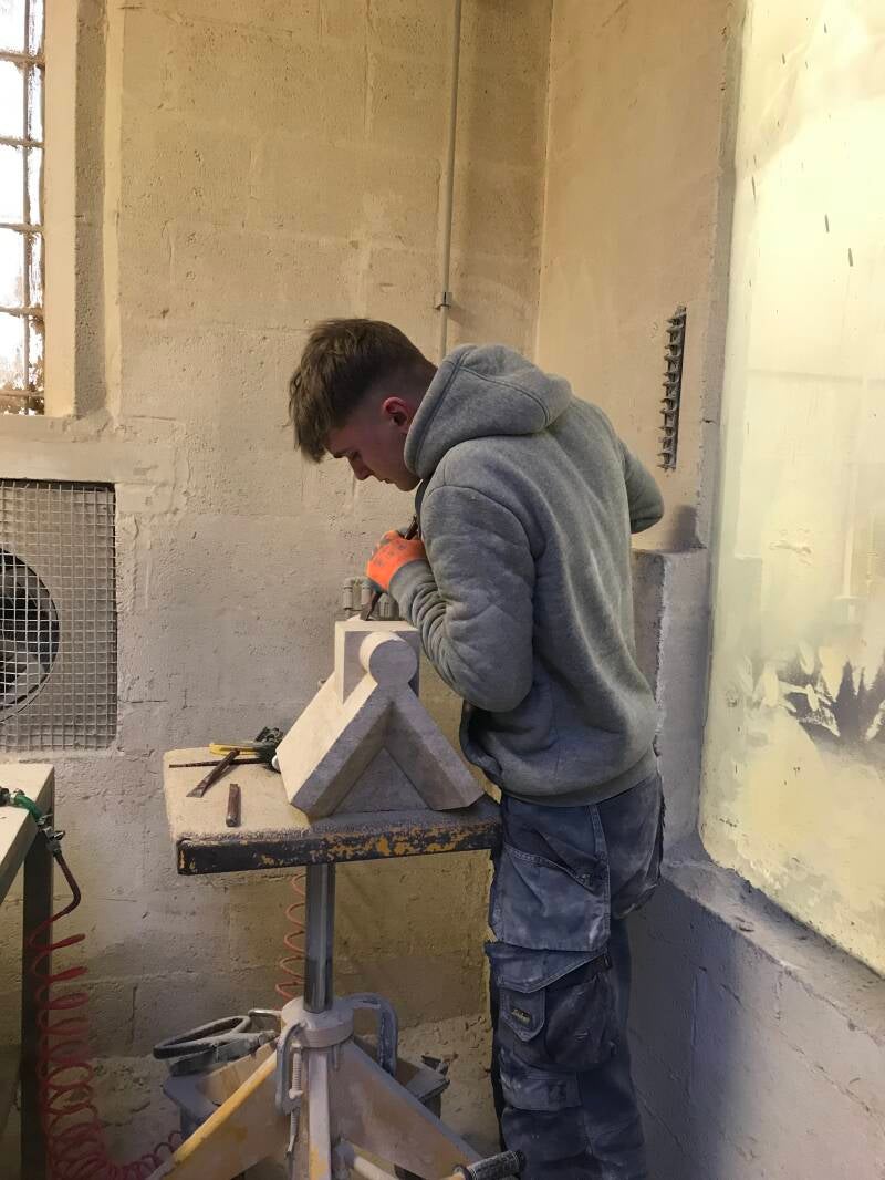 The past weeks have seen work both at our church and at the stonemason’s yard .
